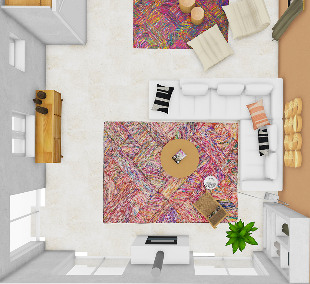 Je vous fourni également un plan d’aménagement vu du dessus qui vous permet de bien comprendre la nouvelle implantation dans l’espace, la circulation, la disposition du mobilier…